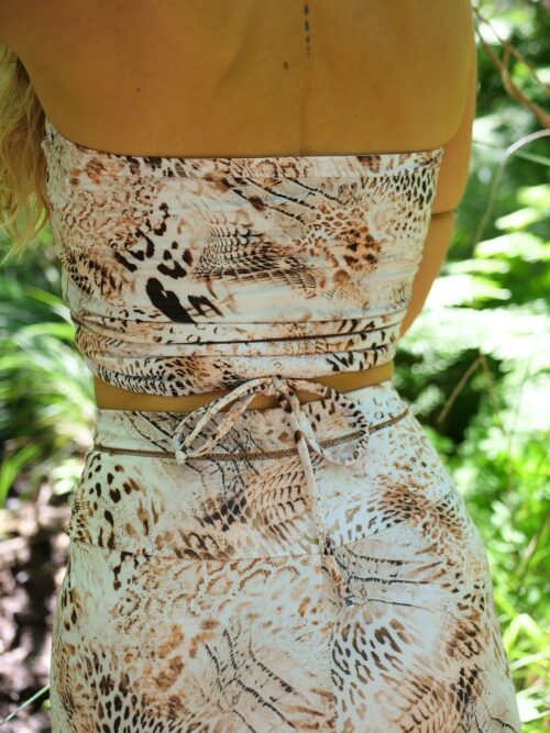 La collection se compose donc de coupes épurées permettant ainsi à l’imprimé animal de dévoiler toute finesse et aux détails d’être révélés…